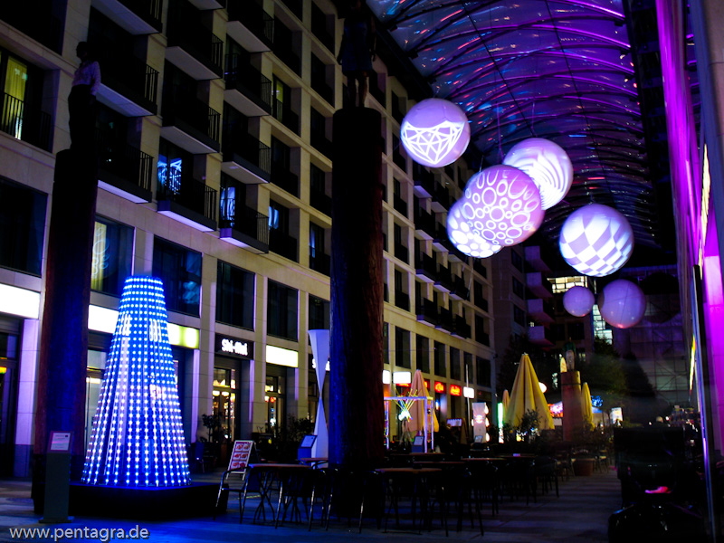 Pictures of the Festival of Lights in Berlin. The festival takes place every year in October. The city is illuminated with light installations, projections, and fireworks. The festival lasts for several days. The pictures were taken in 2009.