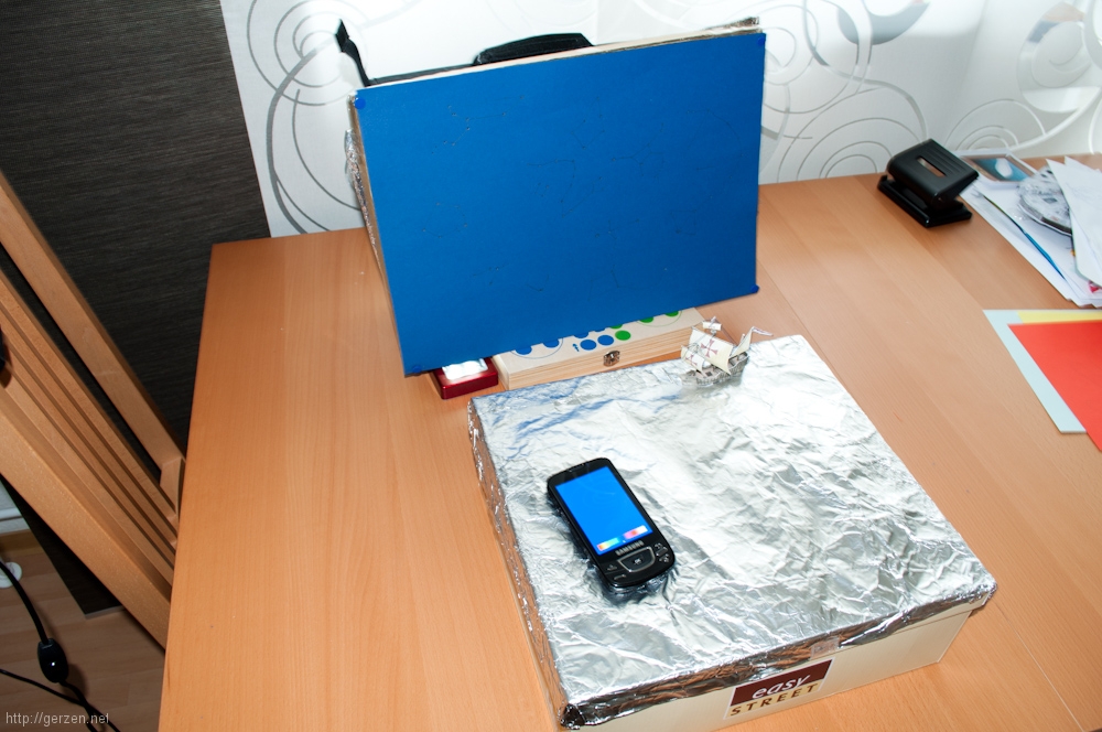 Neulich habe ich ein Papiermodell von Kolumbus' Schiff, der Santa Maria, zusammengeklebt. Aber ich wollte mehr als nur ein Modell machen, und da kam mir die Idee eines einfachen Dioramas. Ich bastelte ein Meer aus Alufolie und einen Sternenhimmel aus gelöchertem Karton. Ich stellte die Kamera auf Langzeitbelichtung und malte die Komposition mit dem leuchtenden Bildschirm eines Smartphones. Das Ergebnis war das Foto "To New Shores".