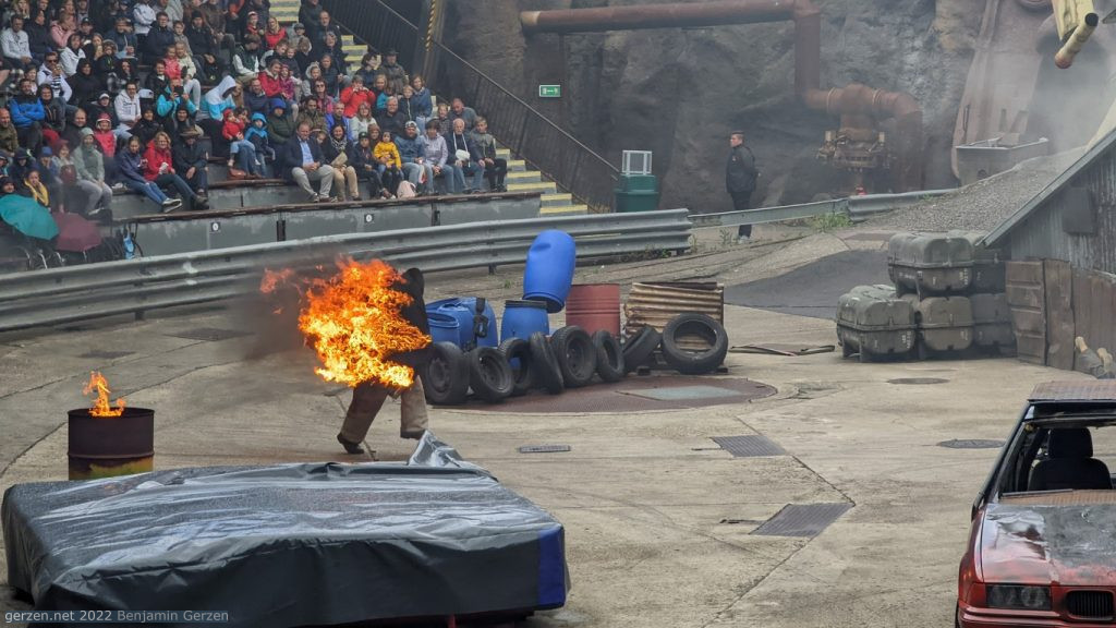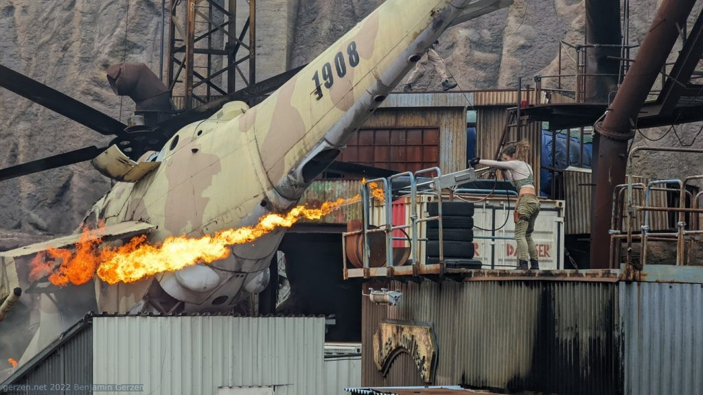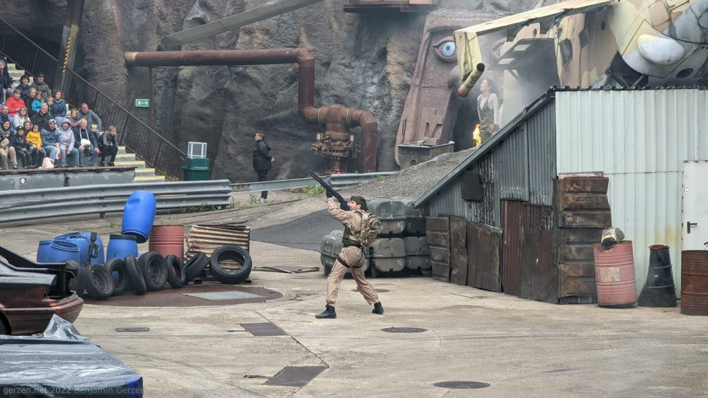 You come to Filmpark, but you are spoiled with a live show. Stunts, fire and shooting. Everything is real, every actor is his role, no separation between real and FX, one mistake and that's it. Watch and be amazed.
